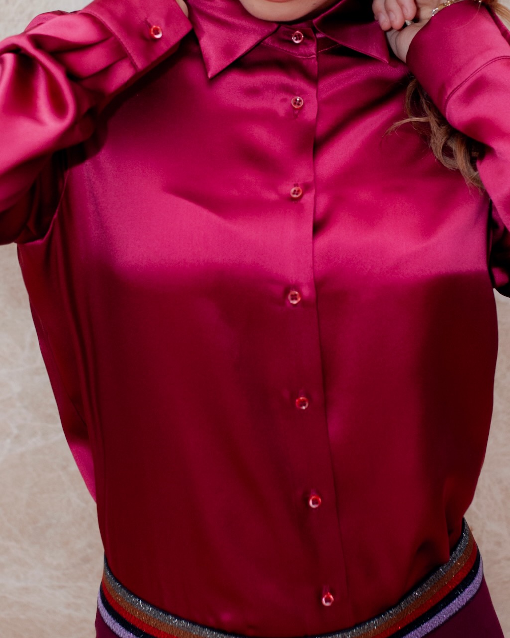 Merging the elegance and fluidity of silk satin with classic timeless design, this shirt becomes a cornerstone of your refined wardrobe.